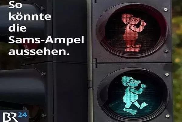 德國(guó)城(chéng)市班貝克為了紀念德(dé)國少年兒(ér)童文學作家、插畫師、翻譯家以及班貝格生活編(biān)劇—— 保羅•馬(mǎ)爾,把紅綠(lǜ)燈小人(rén)形象更換成了保羅•馬爾作品中主人公 Sams 的形象。